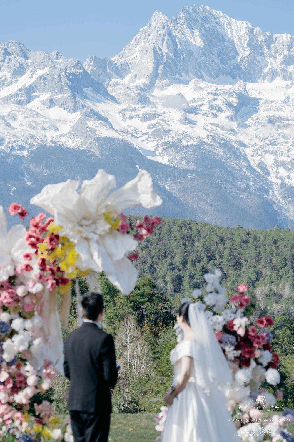 “在雪山见证下许下一生誓言,很有意义。”10月2日,来自山西的新人陈兴、李梦圆在玉龙雪山海拔约3200米的草坪上,举行了期待已久的婚礼。