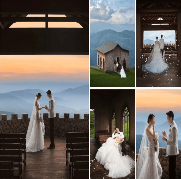 金夫人在杭州拥有华东地区丰富的独家外景拍摄资源,打造了山顶、高尔夫、水上三大独家目的地婚礼基地,不出杭州即可拍摄到大理、丽江、新疆等热门旅拍地的场景风格,让新人省去异地拍摄的行程成本与时间成本。同时,金夫人斥资百万搭建云顶、教堂、高尔夫草坪等仪式婚礼场景,仪式长条桌、香槟塔等布置让拍摄过程兼具旅行的自由与婚礼的郑重,让婚拍不再是单纯的拍照,而是一次专属的情感仪式体验。