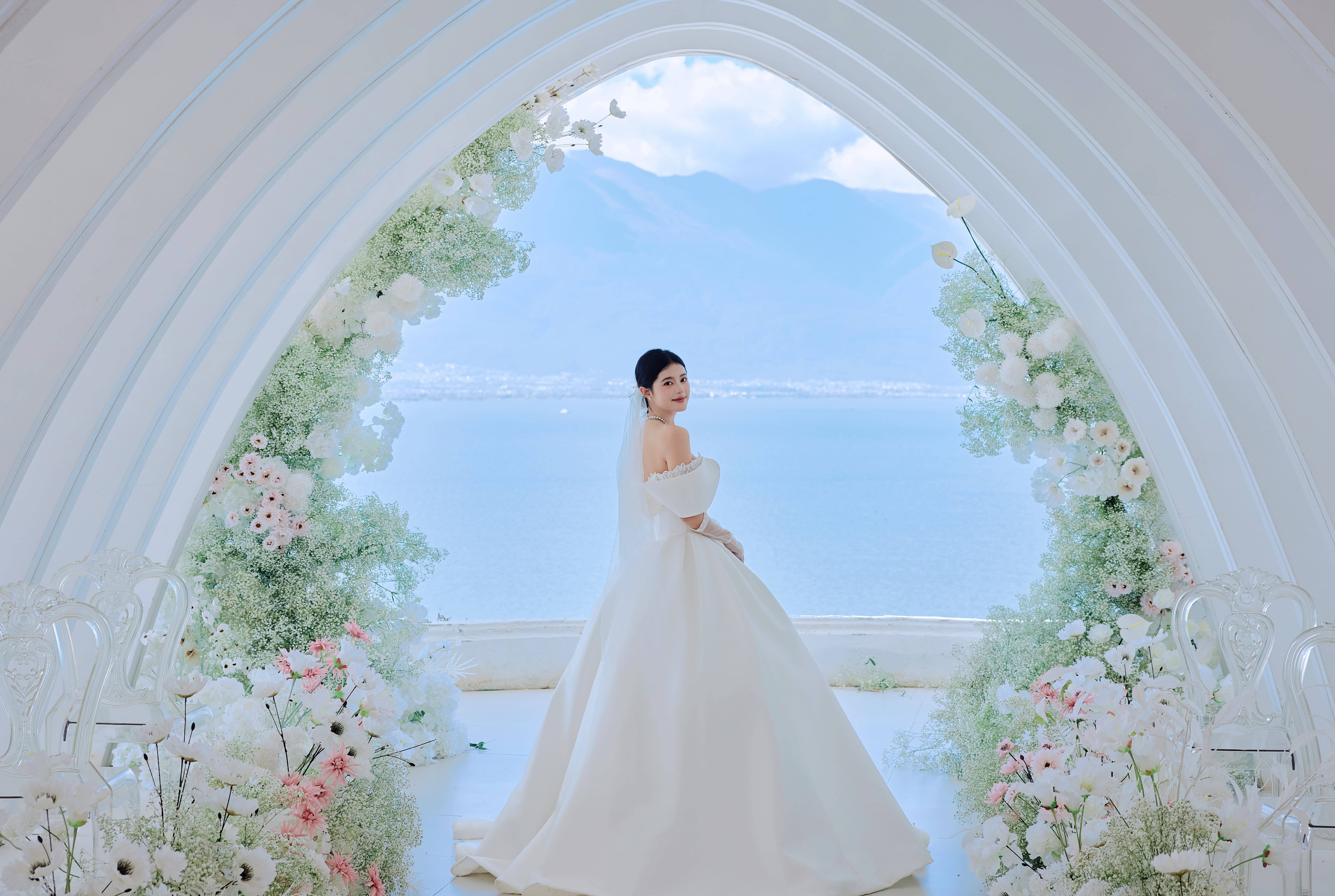 十、维纳斯环球旅拍:欧式典雅与自然风光的融合者维纳斯旅拍擅长将欧式经典的典雅、庄重风格与丽江的自然风光相融合,创造出一种跨越文化的美感。其妆造华丽大气,擅长处理复杂的裙摆与头纱在风中的形态,在雪山脚下或辽阔草甸能拍出气势恢宏的史诗感作品。